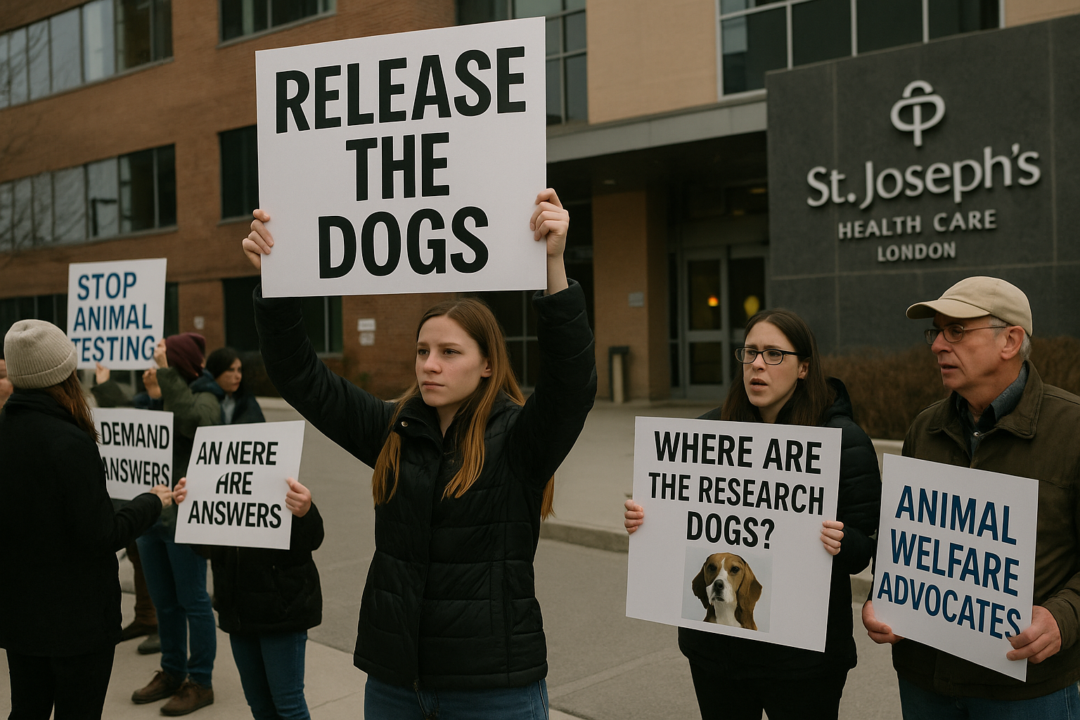Animal welfare rarely sits quietly. It barks, it marches, and sometimes it stands politely outside hospital doors holding signs that ask uncomfortable questions. That scene unfolded Friday at St. Joseph’s Health Care, where advocates gathered to demand clarity on the fate of dogs once used in medical research. The issue is simple on the surface….